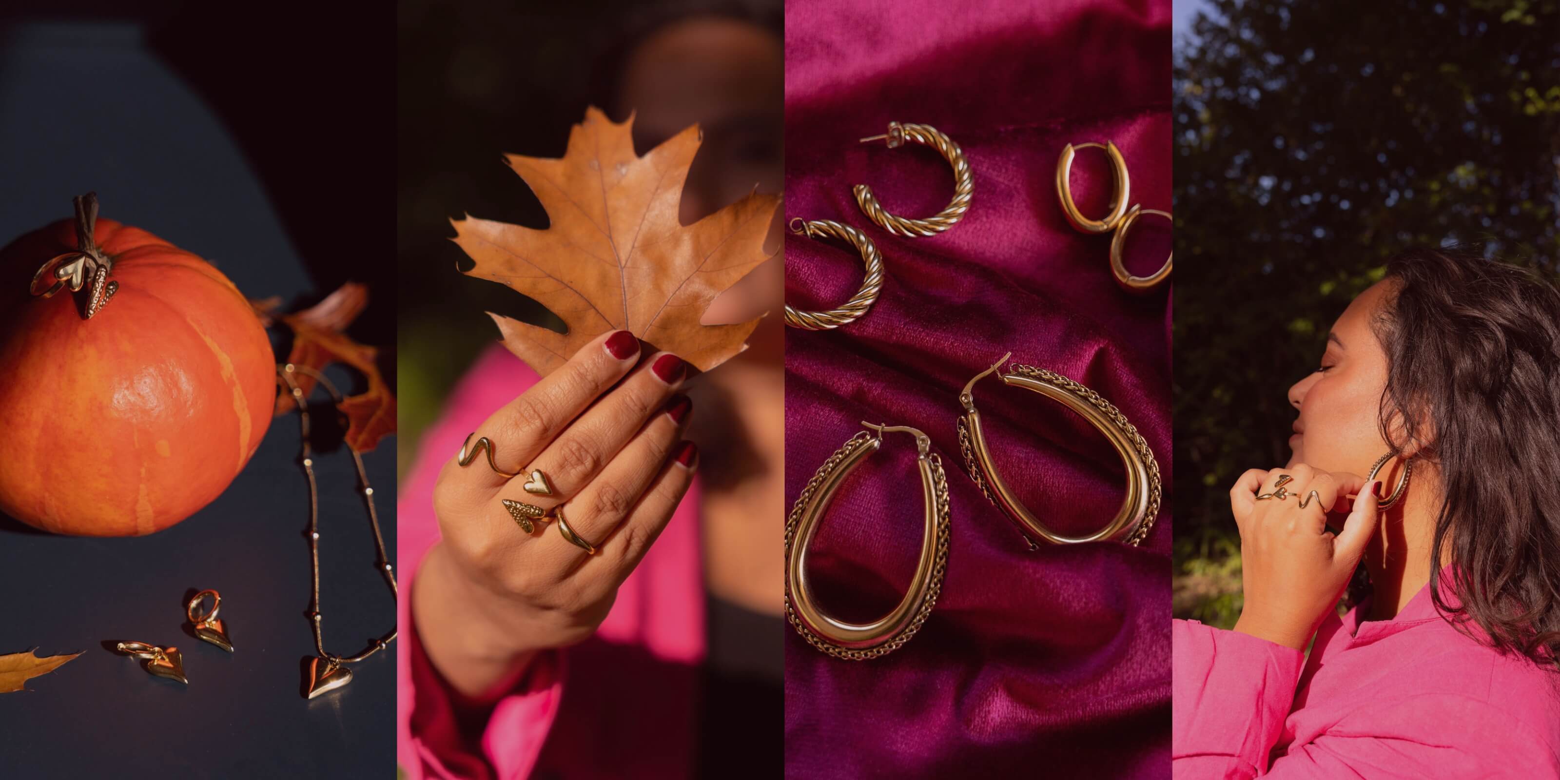 Denk aan vallende bladeren, zachte truien en glanzende sieraden die elke outfit compleet maken. Deze collectie is gemaakt om jou te laten stralen zowel van binnen als van buiten.